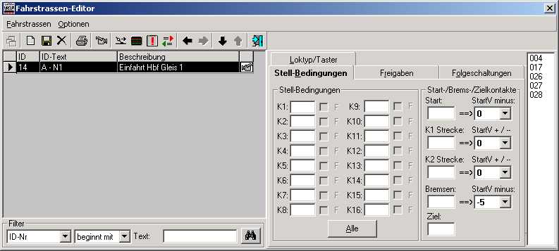 Zur Erstellung der Fahrstraßen (FS) benutzen Sie den