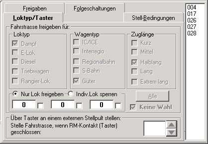 Auch mit den Lok- und Zugtypen können sie Selektierungen für